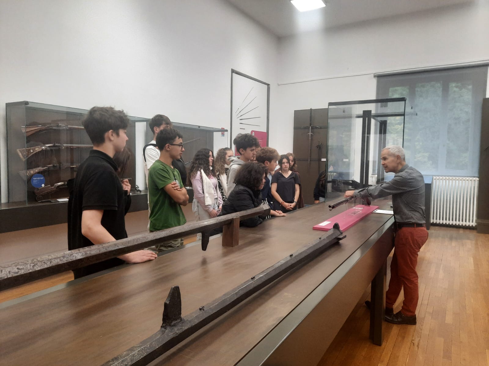 Le matin, ils ont visité le troisième étage du Musée d'art et d'industrie de Saint-Étienne pour approfondir l'histoire industrielle de la ville et comprendre son rôle dans la fabrication d'armes pour l'indépendance des États-Unis dont nous célébrons le 250e anniversaire d'accès à l'indépendance en 2026.