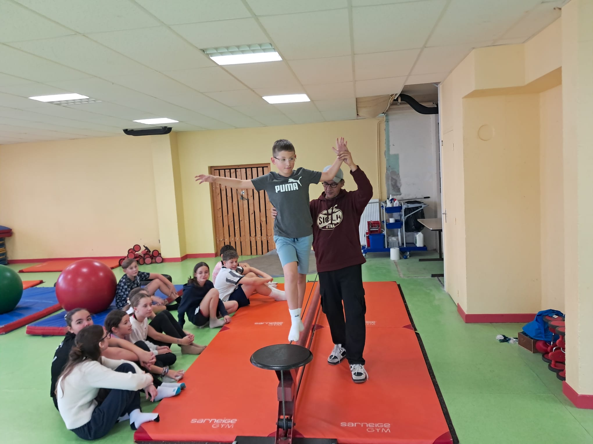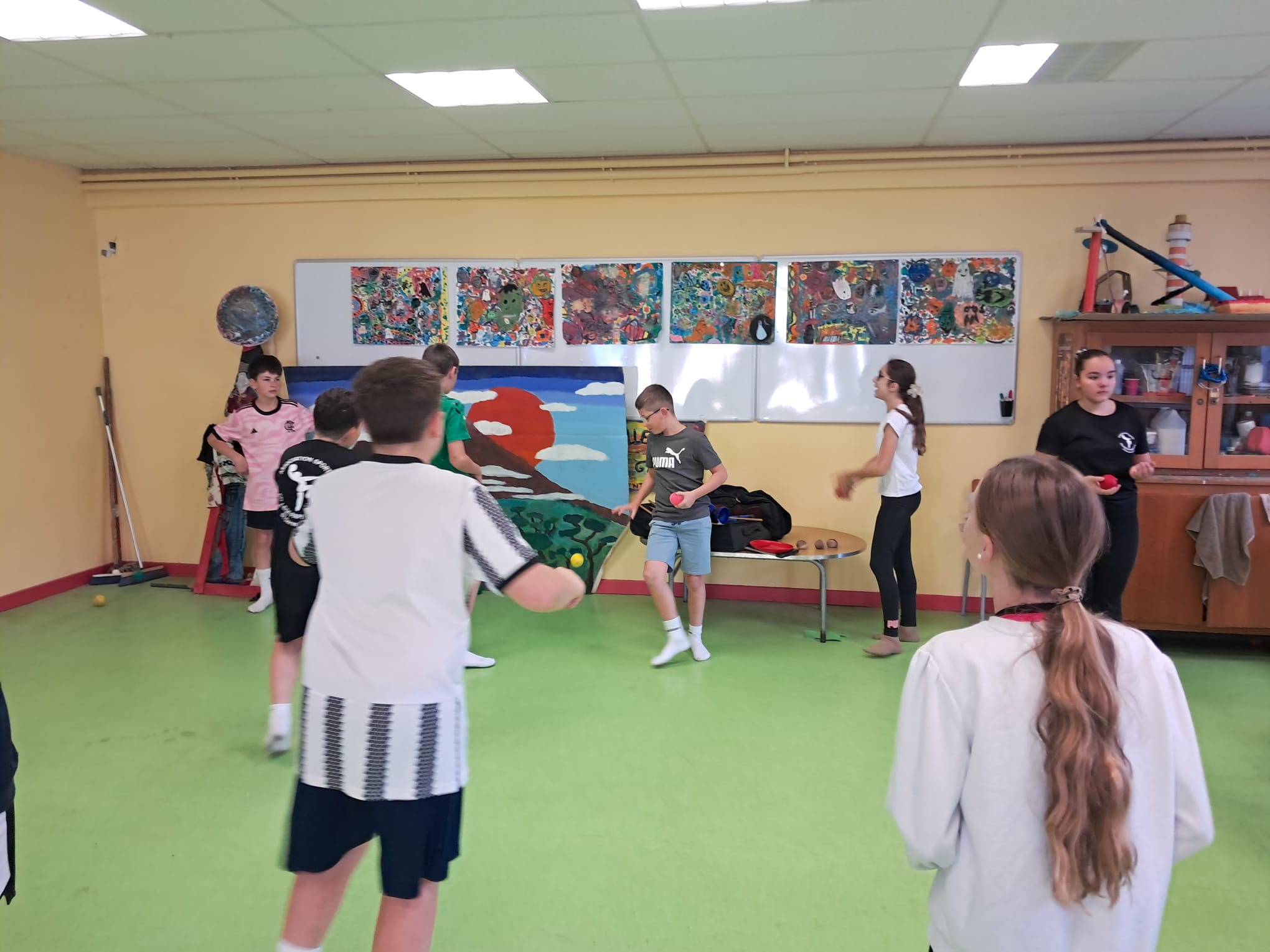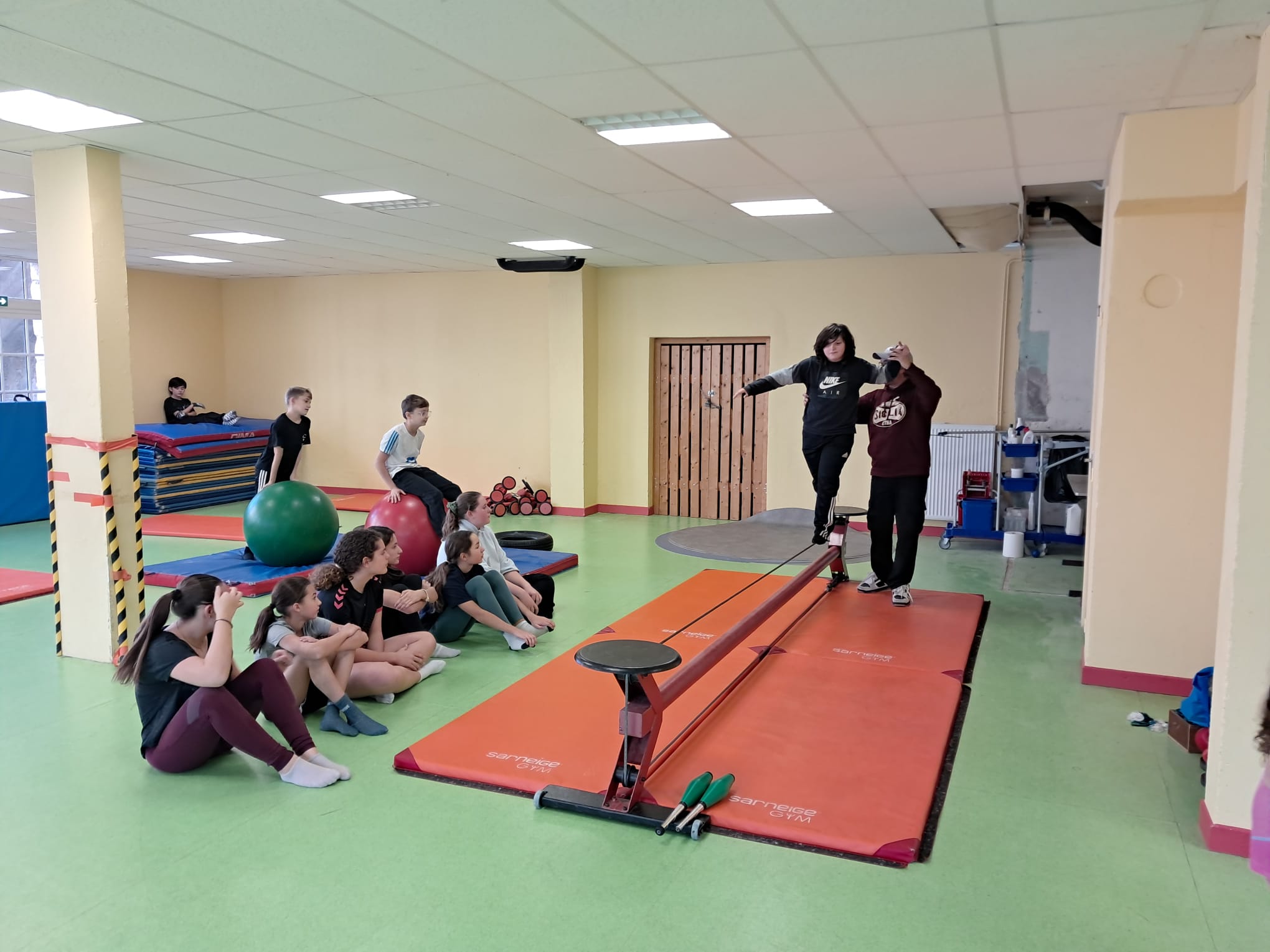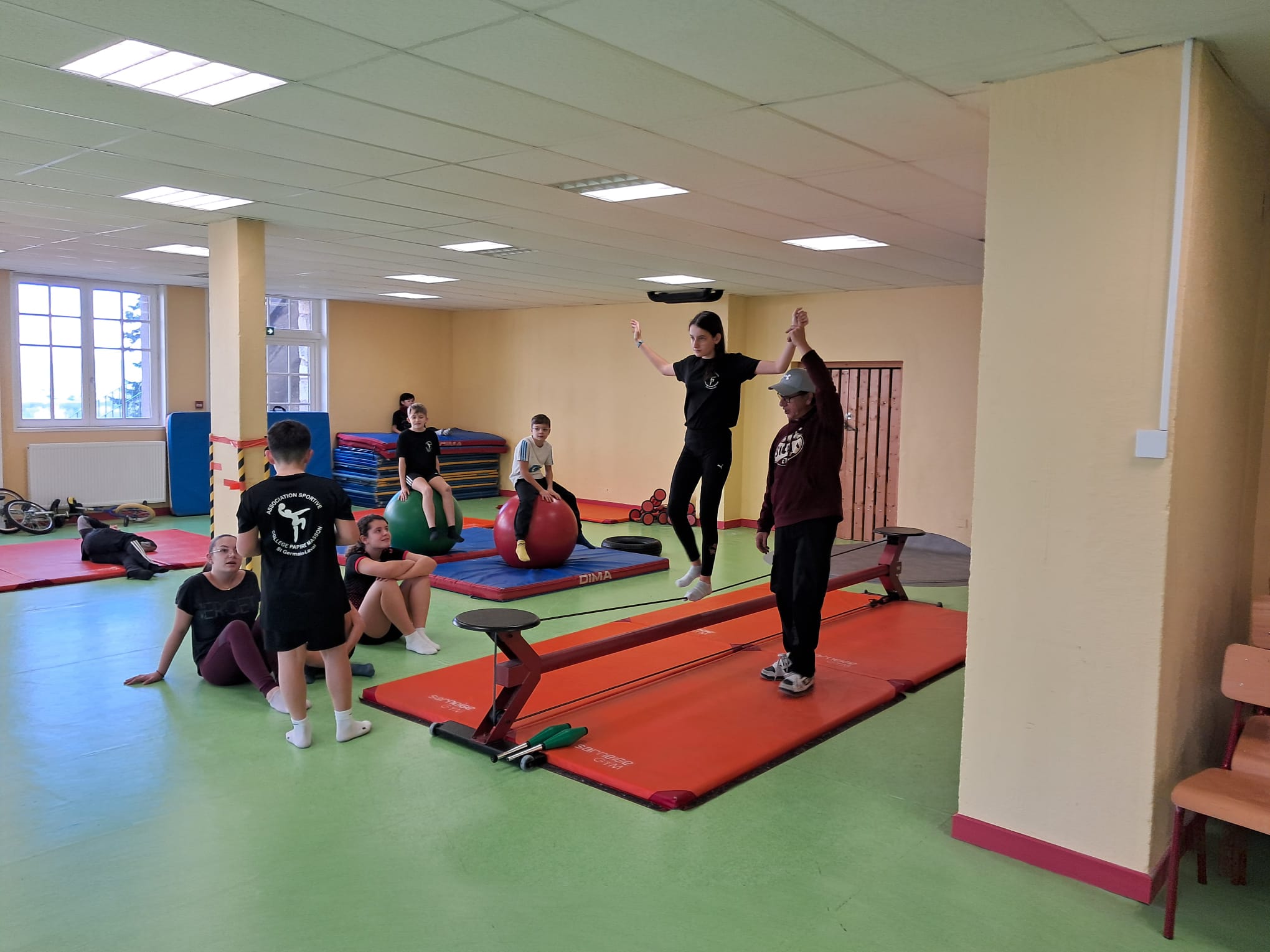 Les jeudis matin, les élèves de 5è travaillent avec Fabien GRACI d'ARTISSIMO, pendant 9 séances sur leur séquence de cirque.
