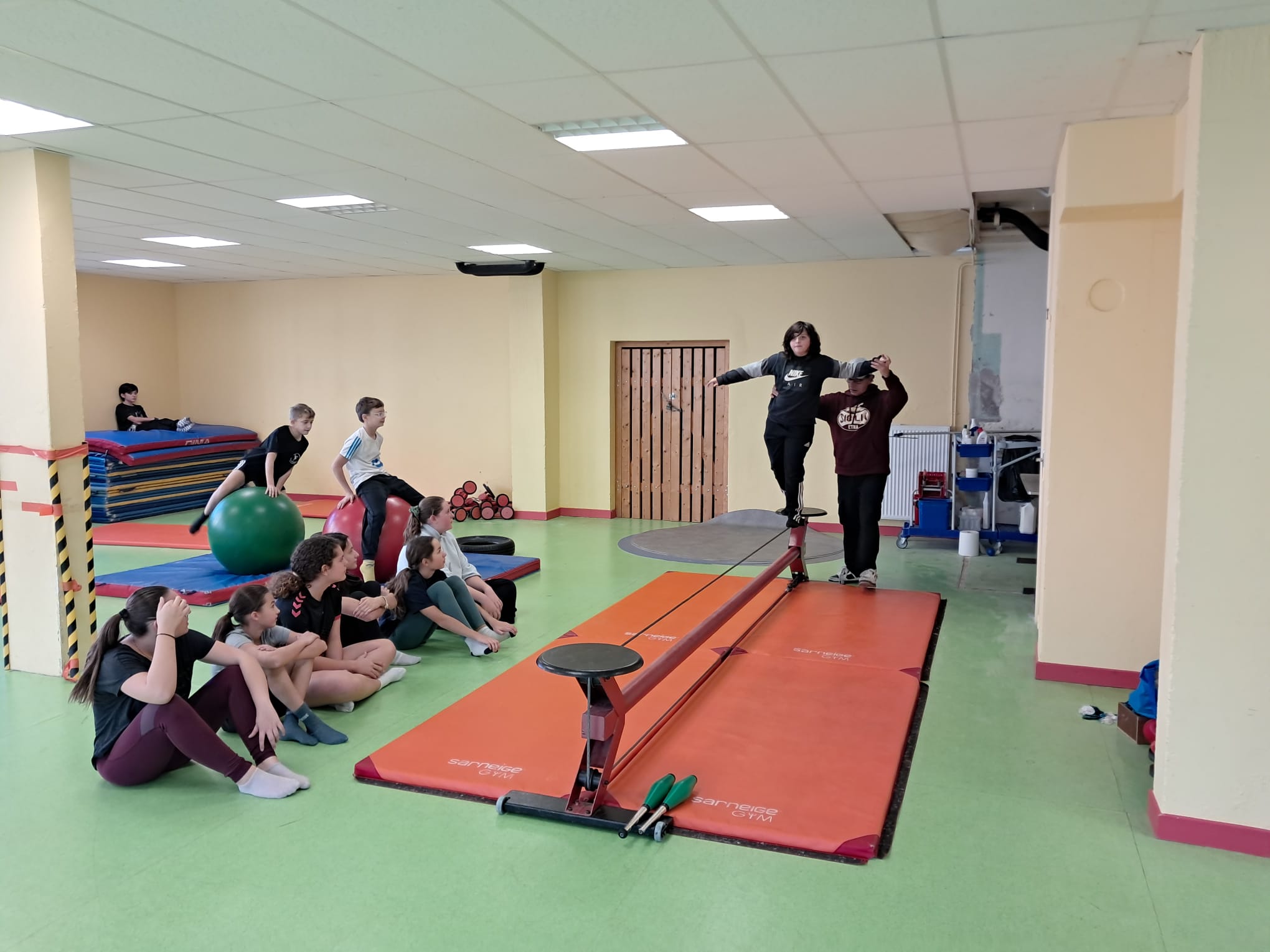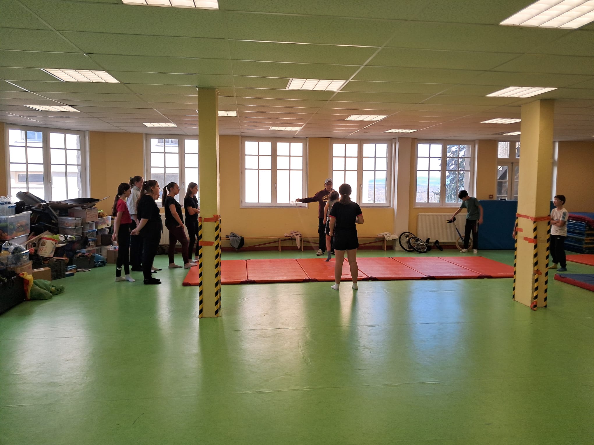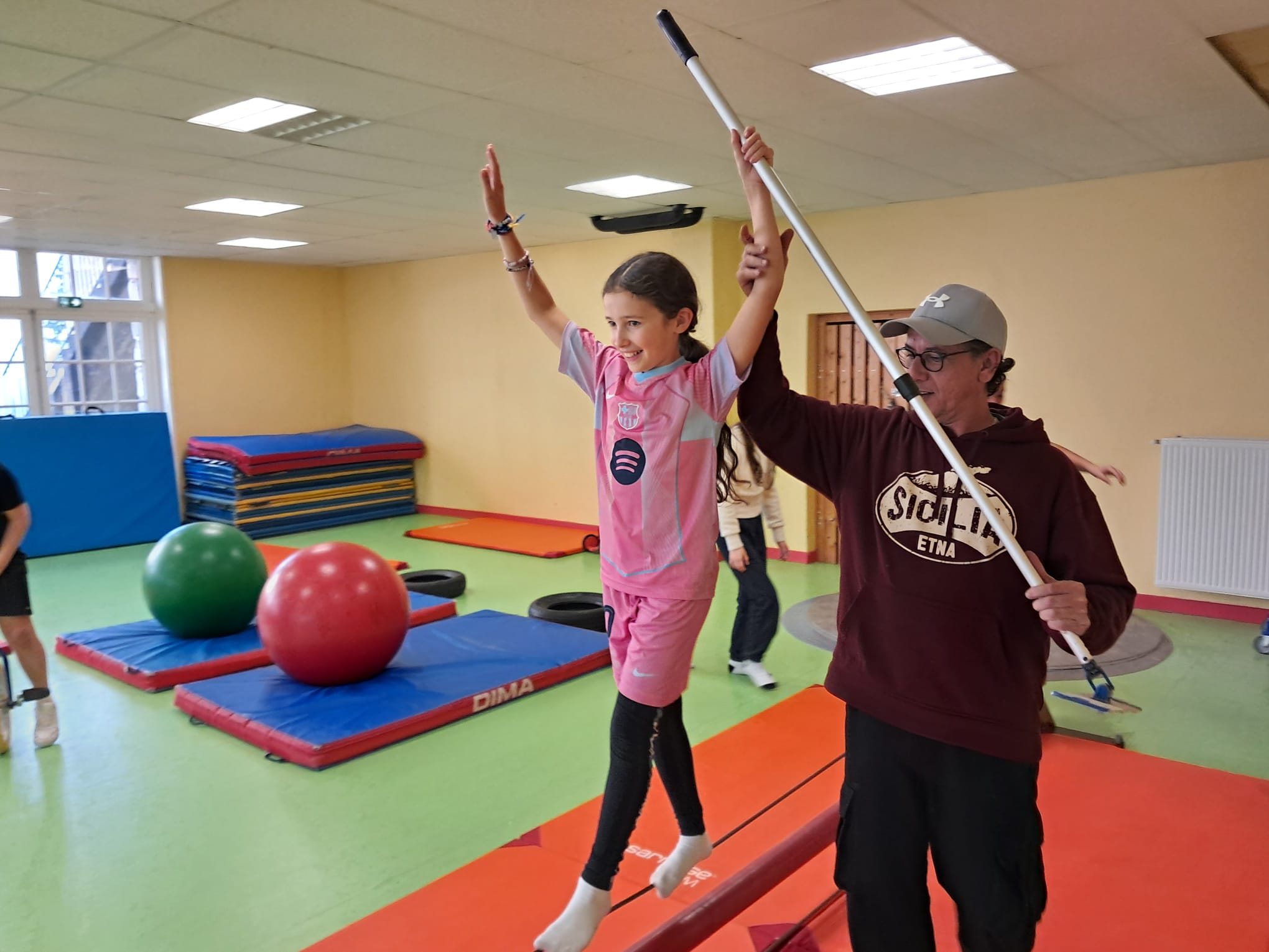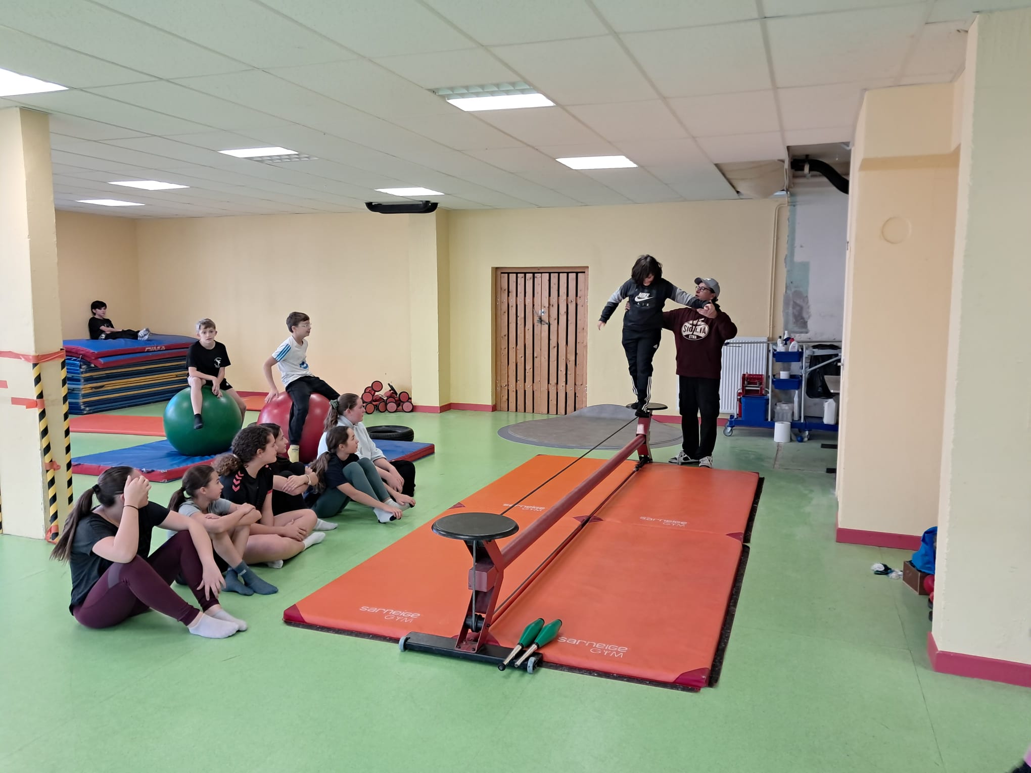 Les jeudis matin, les élèves de 5è travaillent avec Fabien GRACI d'ARTISSIMO, pendant 9 séances sur leur séquence de cirque.