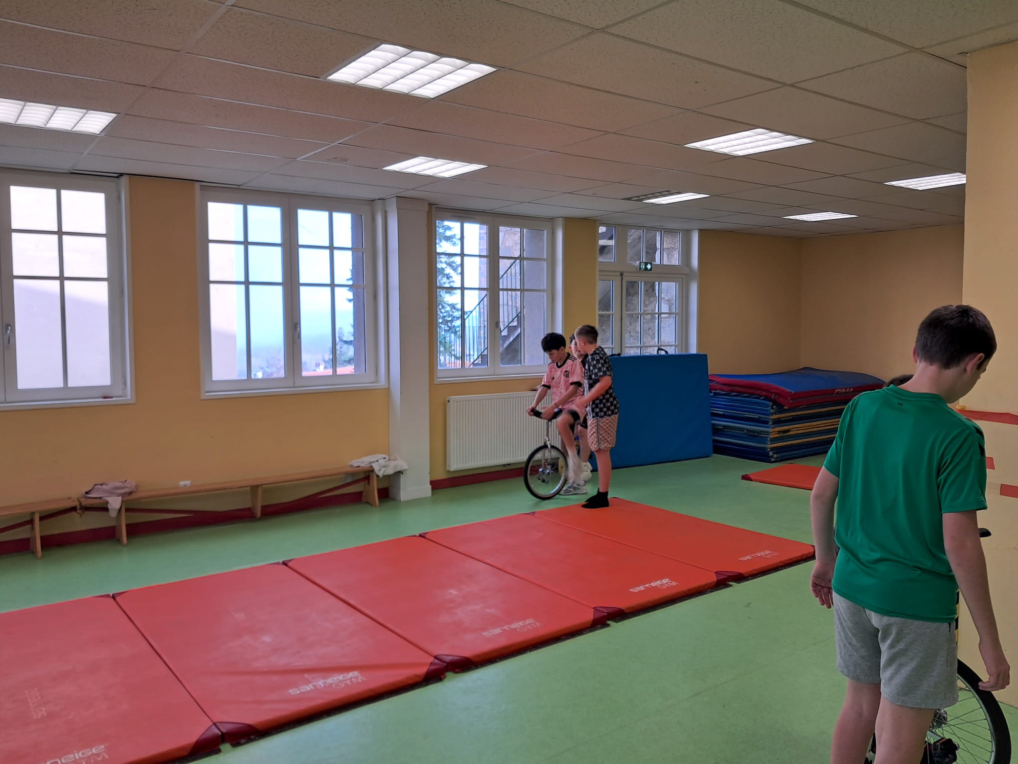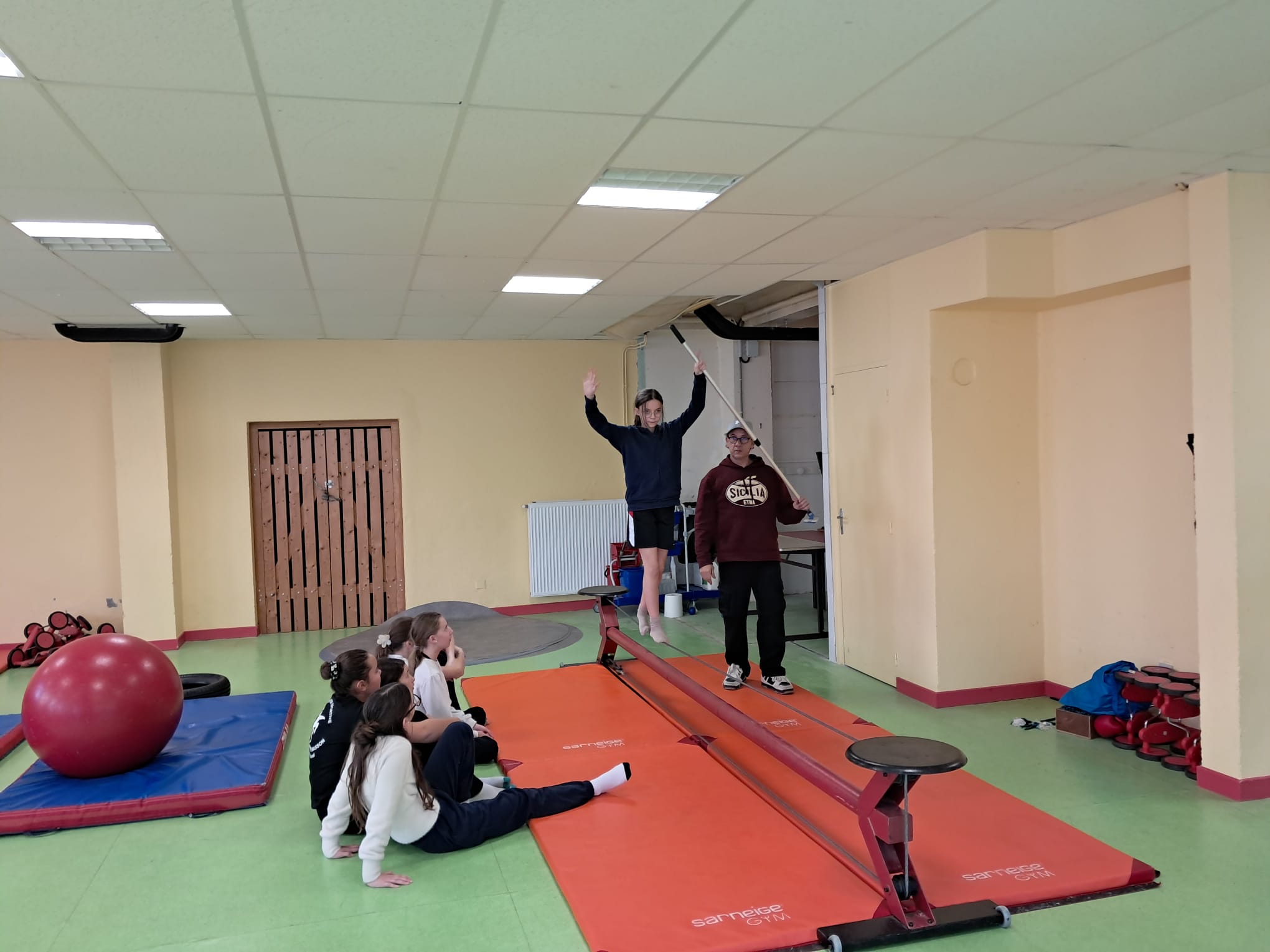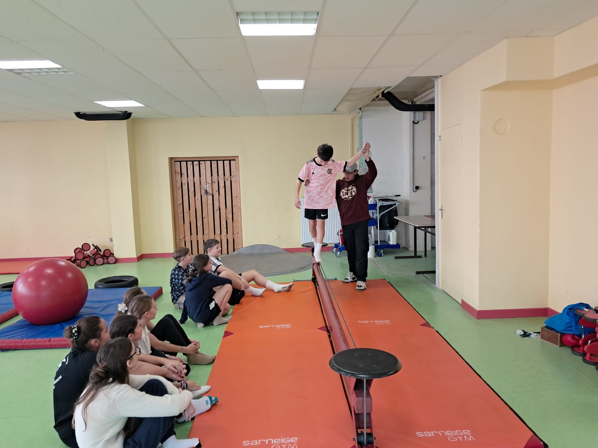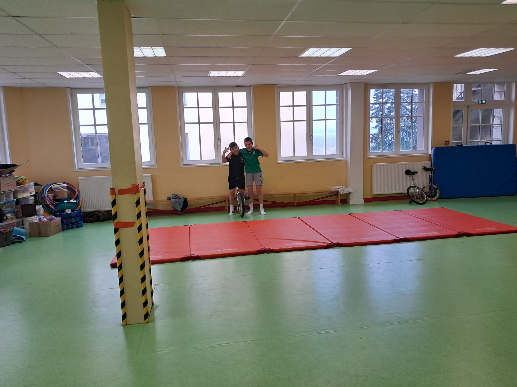 Les jeudis matin, les élèves de 5è travaillent avec Fabien GRACI d'ARTISSIMO, pendant 9 séances sur leur séquence de cirque.