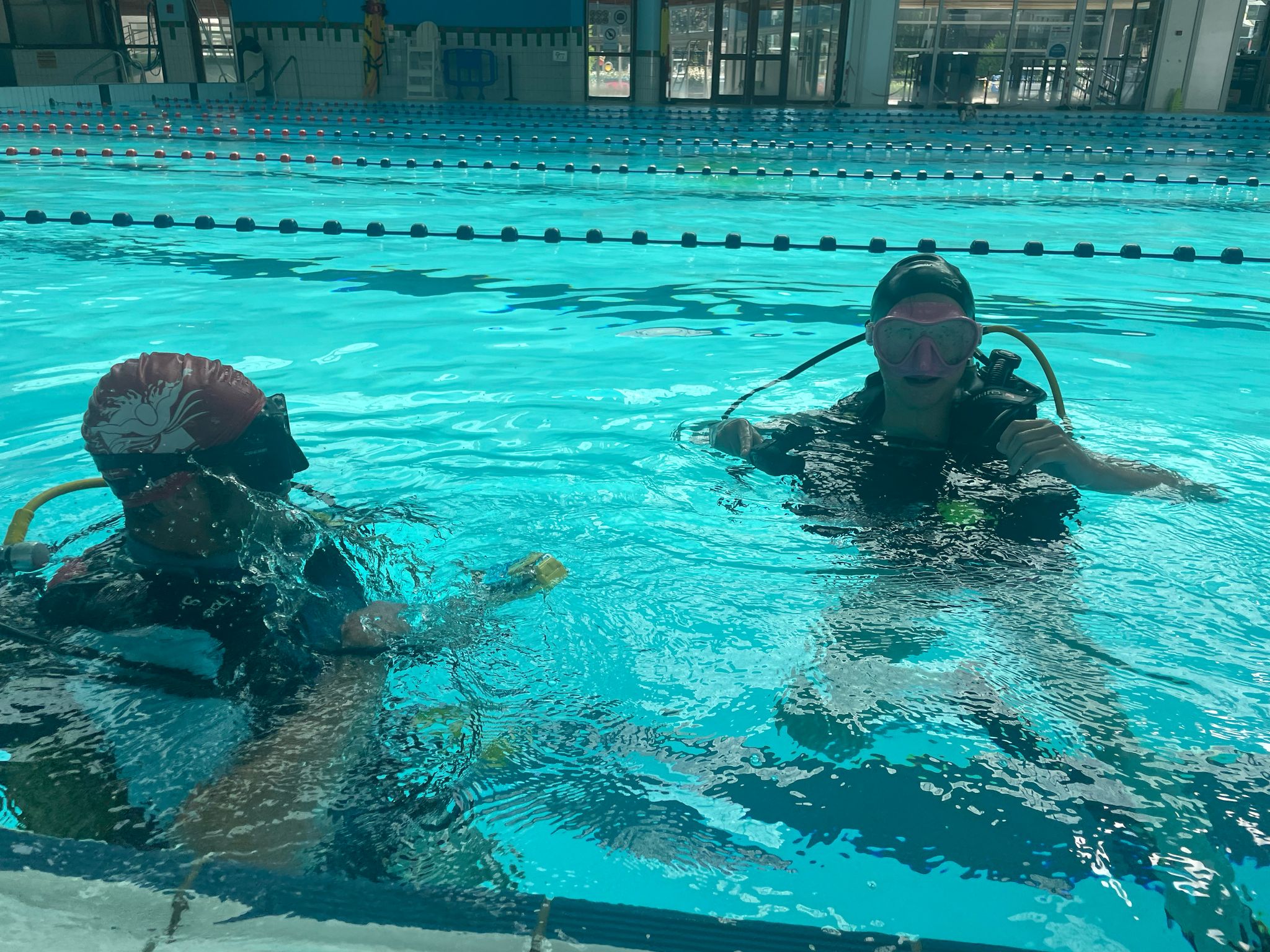 Mardi 24 juin, au centre nautique de Roanne, 12 élèves du collège ont eu la chance de faire un baptême de plongée sous-marine. Accompagnés par leurs professeures d'EPS, ils ont été encadrés par cinq moniteurs de plongée et un aide du Club Roannais de Plongée.